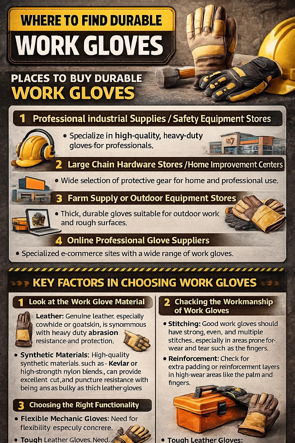 Nếu bạn cần găng tay làm việc cho những công việc nặng nhọc, chẳng hạn như xử lý gỗ, dụng cụ sắc nhọn hoặc làm việc ngoài trời, hãy cân nhắc những nơi này.